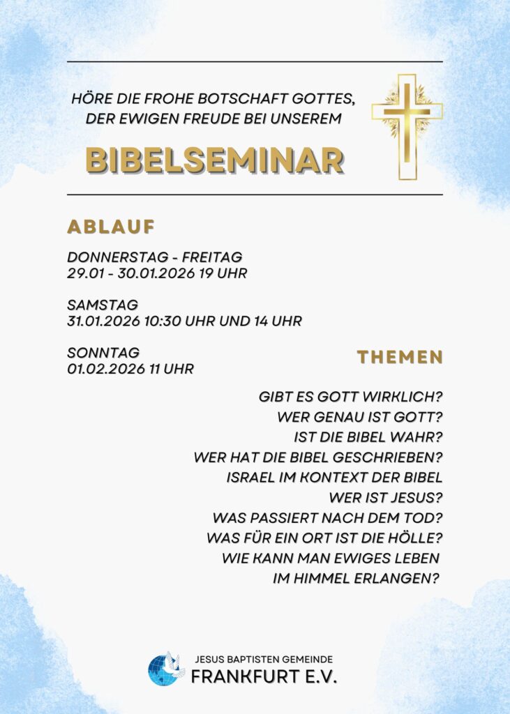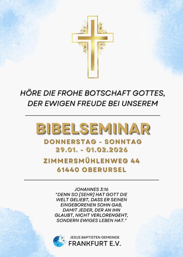 Willkommen in der Jesus Baptistengemeinde in Frankfurt e.V., wo wir unseren Glauben stärken, gemeinschaftlich wachsen und das Wort Gottes verkündigen.